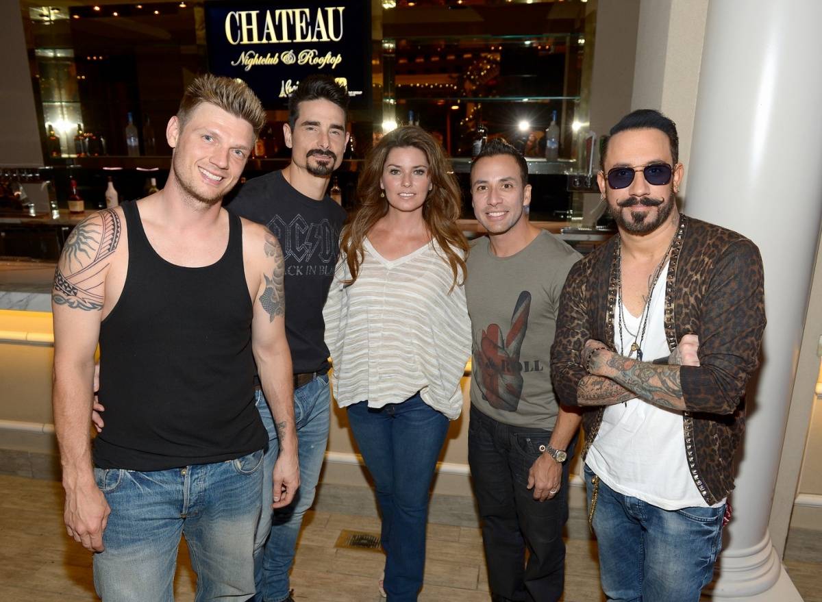 Nick Carter, AJ McLean, Howie Dorough and Kevin Richardson arrived at midnight and walked the red carpet with excited fans following the band in the hopes of getting a photo or autograph. The Backstreet Boys didn’t disappoint, and from the red carpet to the stunning rooftop, band members were followed by a mob of fans wanting “selfies” and hugs. While taking a back route to the rooftop, they walked up to The Deck at Chateau where they discovered the private karaoke party. Twain spotted the Backstreet Boys and ran over for hugs, and the group caught up for about 15 minutes and took a few photographs with Twain before heading upstairs for their party.