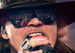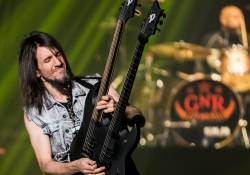 Actor and friend of the band Nicolas Cage helped kicked off the sold-out show by getting concertgoers amped up as Guns N’ Roses prepared to take Las Vegas by storm. Within seconds of his exit, guitarist DJ Ashba elevated into the air on a center stage platform overlooking the crowd followed by a firework display during which vocalist Axl Rose, guitarists Ron “Bumblefoot” Thal and Richard Fortus, bassist Tommy Stinson, keyboardists Dizzy Reed and Chris Pitman, and drummer Frank Ferrer appeared alongside him. In true Guns N’ Roses fashion, the band welcomed everyone to the jungle with its all-new, never-before-seen production.