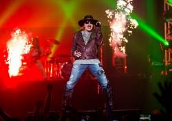 Throughout the show, fans were wowed with the over-the-top production, which included large LED screens above and around the stage, fireworks and laser displays, beautiful dancers, platforms and more. In addition to the elaborate theatrics, Guns N’ Roses delivered a set-list full of its biggest hits including “Sweet Child O’ Mine,” “Welcome to the Jungle,” “Paradise City,” “Mr. Brownstone,” “Estranged,” an intimate piano rendition of “November Rain” by Rose and more. Spotted in the crowd was model Jenna Jameson.