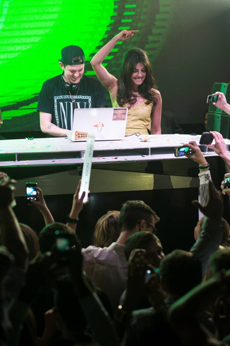 After being introduced, Chopra made her way into the DJ booth to welcome her fans and guests in town for Cinco de Mayo weekend. As DJ Dillon Francis kicked off his music, she instantly put her hands in the air and danced eliciting even more excitement from the packed club.