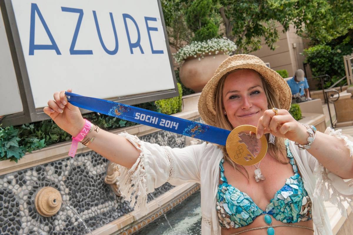 Last Sunday, snowboarder Jamie Anderson, who won Olympic gold in the slopestyle event at the 2014 Games in Sochi, Russia, kicked off the 2014 season grand opening of pool season at the Palazzo at Azure Luxury Pool.