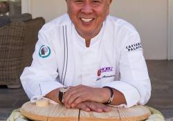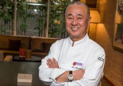Another new addition to the Master Series dinner line-up, chef Nobu Matsuhisa welcomed his guests for “Global Gourmand” at Nobu Caesars Palace. Critically acclaimed Chef Nobu was joined by Bon Appétit editor Andrew Knowlton in welcoming a full house. Taking the time to speak with every table, Nobu chatted with all his guests prior to the courses being delivered. The seven-course meal consisted of the salmon kelp roll, fluke spinach salad, Chilean sea bass moronic miso, Braise short rib and zuke maguro, finished by the kinako tiramisu, which did not disappoint.