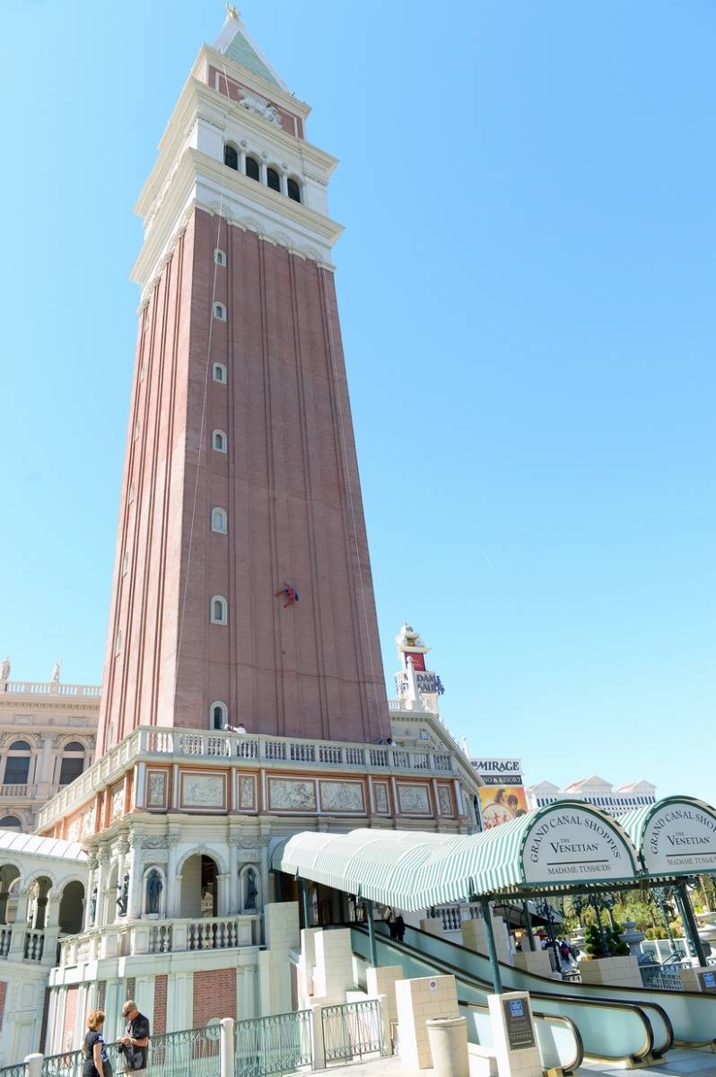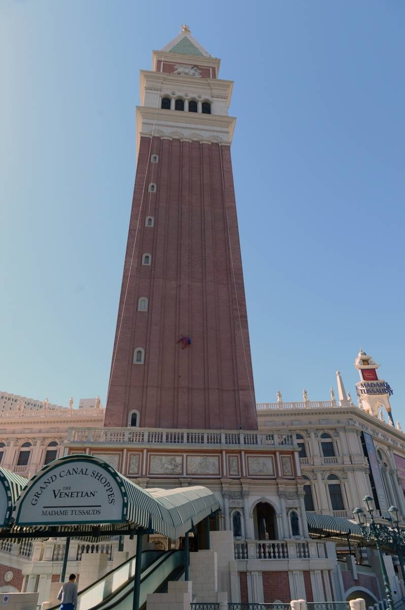 Marvel’s Spider-Man, the newest figure to arrive at Madame Tussauds at the Venetian, is spent last weekend poised above the Las Vegas Strip. The beloved Marvel Super Hero’s debut follows the successful launch of the attraction’s Marvel Super Heroes 4D Experience. The figure spent its first three days in Las Vegas clinging to the side of the Venetian’s Campanile Tower, ready to spring into action. Positioned approximately 35 feet above the ground on the Strip-facing side, near the entrance to Madame Tussauds Las Vegas, the figure was easily visible by passersby.