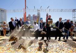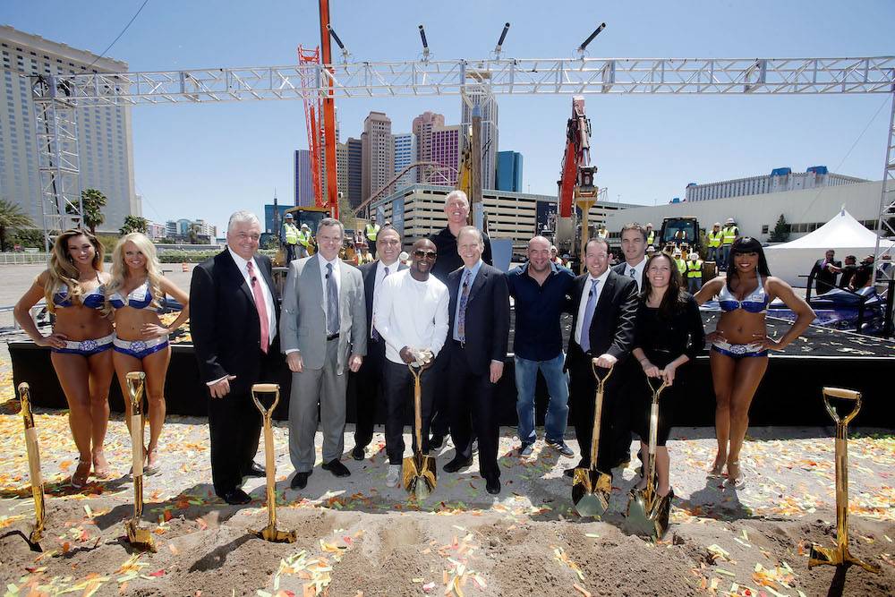 On hand to welcome guests to the special ceremony, which signaled the start of construction of the venue being built on a 16-acre site, were Dan Beckerman, president and CEO of AEG and Jim Murren, chairman and CEO of MGM Resorts International. Joining the partners to put the first shovels in the ground were Chair of the Board of Clark County Commissioners Steve Sisolak, president of Ultimate Fighting Championship Dana White, CEO of Golden Boy Promotions Richard Schaefer, NBA and NCAA legend and Hall of Famer Bill Walton, NHL legend and Hall of Famer Luc Robitaille and WBC Welterweight World Champion Floyd Mayweather, who took time away from final preparations for his Saturday night title defense to participate in this historic ceremony.