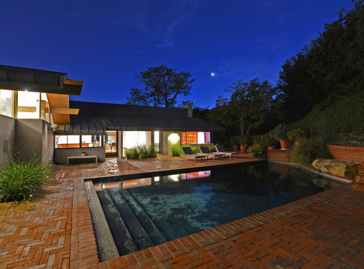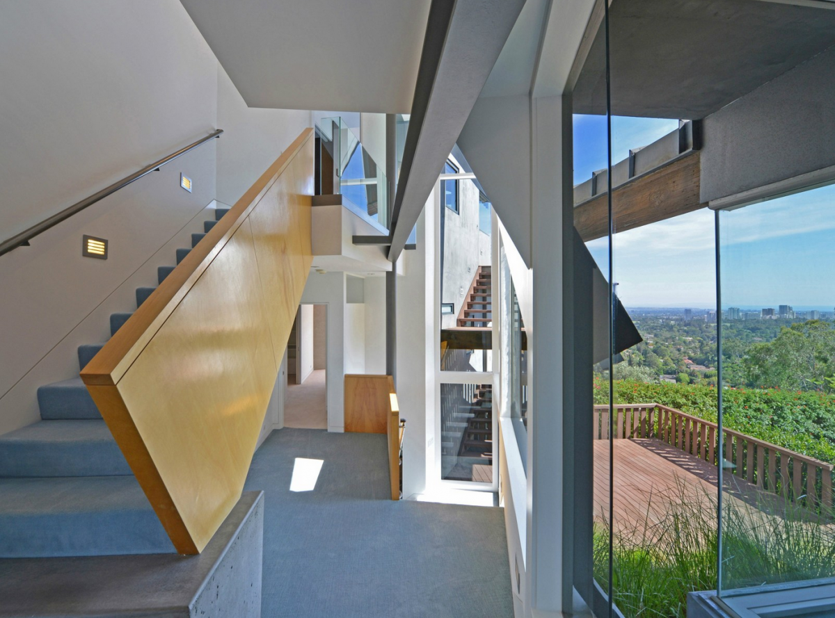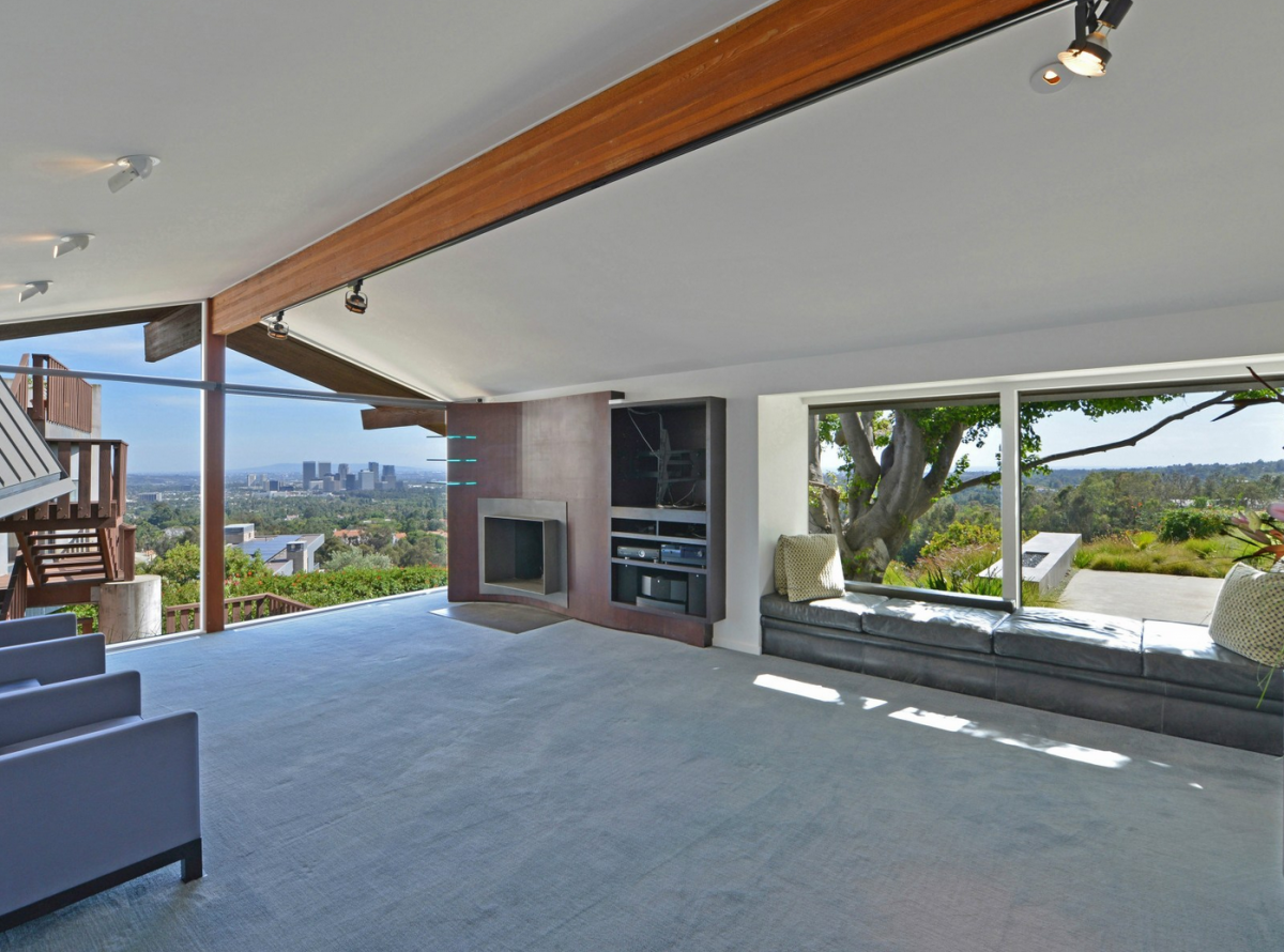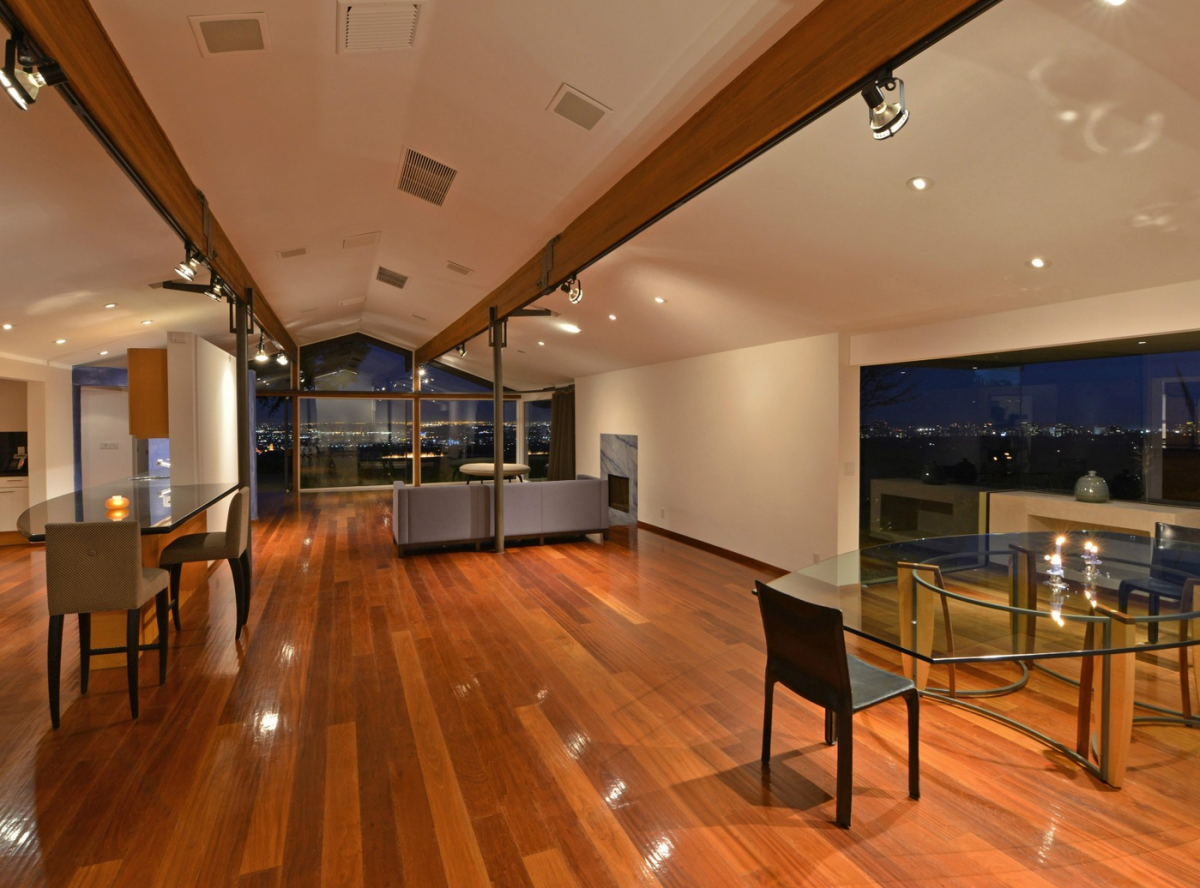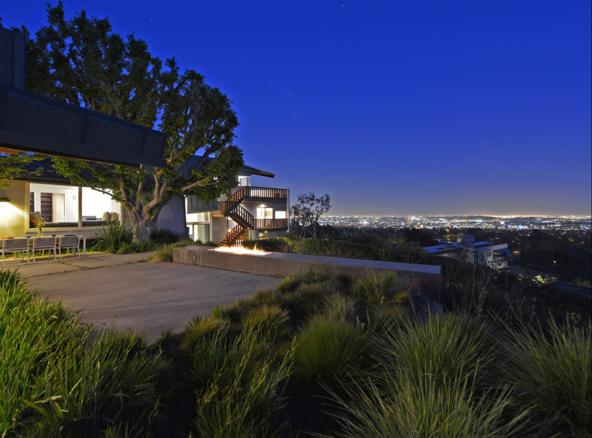 An estate perfect for fans of immense light and space, this impressive architectural promontory compound is a stunning combination of steel, wood, glass, and metal. The home’s wave entry opens up into a loft-like living area, with glass walls overlooking panoramic city and ocean views. The 1.4-acre, highly sought after property also comes complete with a guesthouse, private pool and gated motor court.