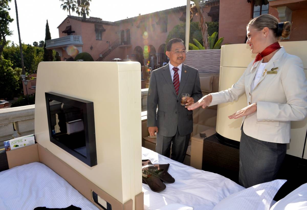 During the champagne reception, guests sampled hors’ dourves and mingled among displays of Etihad Airways’ recently announced Residence, which will be introduced on the airline’s A380 aircraft; it is the only three-room hotel in the sky.