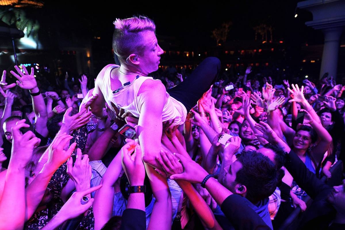 Four-time Grammy winners Macklemore and Ryan Lewis led Wednesday night’s fourth anniversary celebration at Surrender Nightclub in Encore Las Vegas. The duo performed a full-production concert to a packed house in the 60,000-square-foot indoor/outdoor entertainment complex renowned for its dominant Wednesday night industry party “Surrender Your Wednesday.” The event also marked the fourth anniversary of Encore Beach Club, the multi award-winning dayclub which shares the same space and transitions into the sexy nightclub at night.