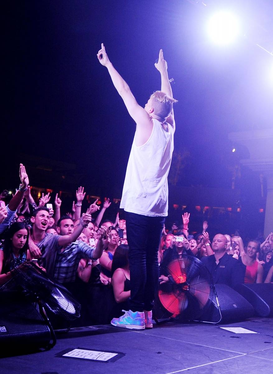 Surrender Nightclub and Encore Beach Club managing partner Sean Christie joined Macklemore and Ryan Lewis on stage before their set when buxom Instagram supermodel Lauren Hanley, who celebrated her 21st birthday at the venue last month, brought out a celebratory anniversary cake. The groundbreaking nightclub received thunderous applause from the capacity crowd.