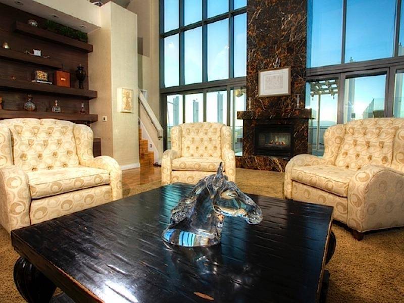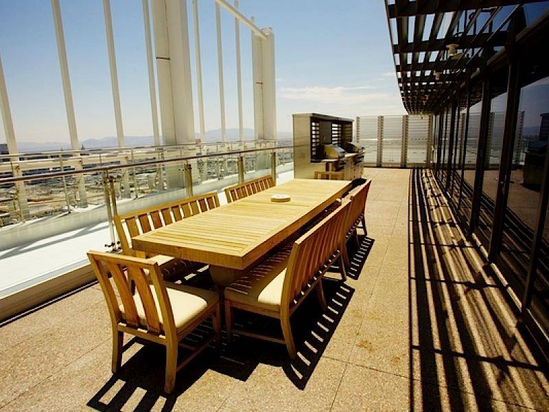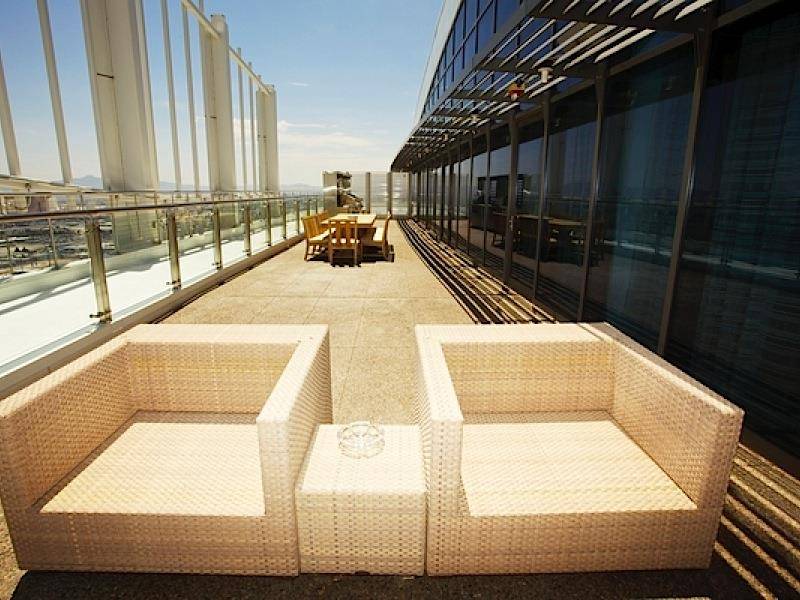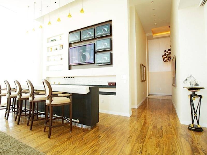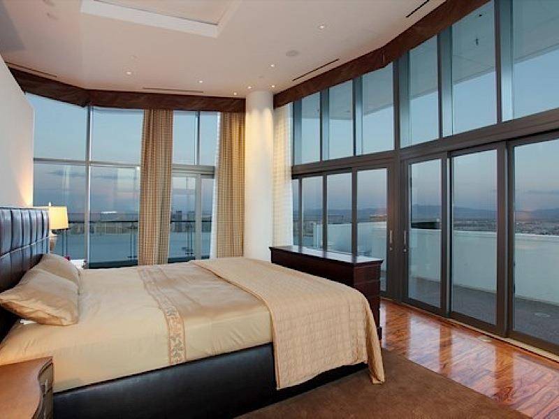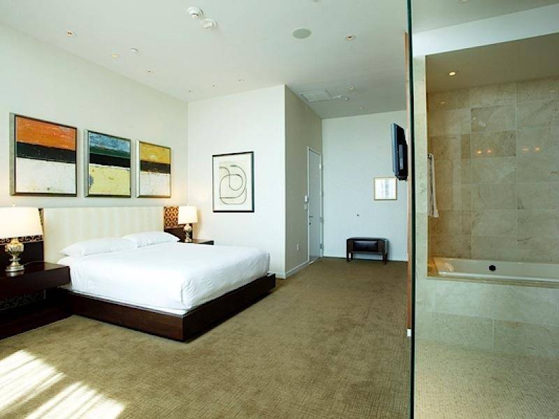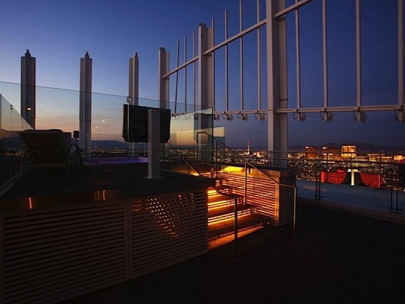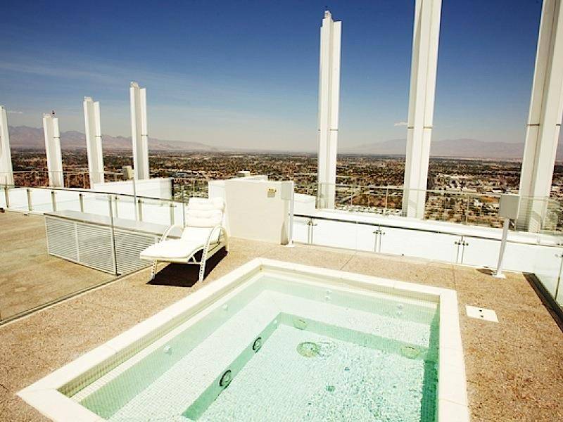 Along with the duo of invaluable art, the phenomenal three-bedroom, five-bath pad comes with a plethora of jaw-dropping features, including a 20-person hot tub; 35 flatscreen TVs; a DJ booth; a wet bar; an outdoor theater and kitchen; and an unparalleled remote control system—not to mention its own helipad. Accessible via private elevator, the glass-encased beauty—which is being sold fully furnished—boasts 30-foot-tall ceilings, and 360-degree vistas of the Strip.
