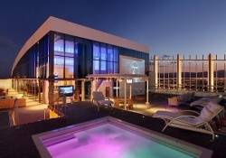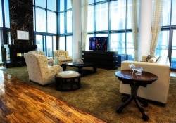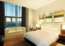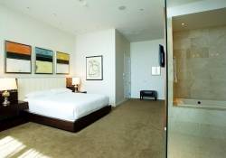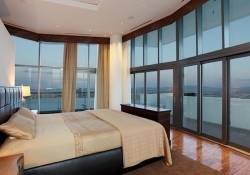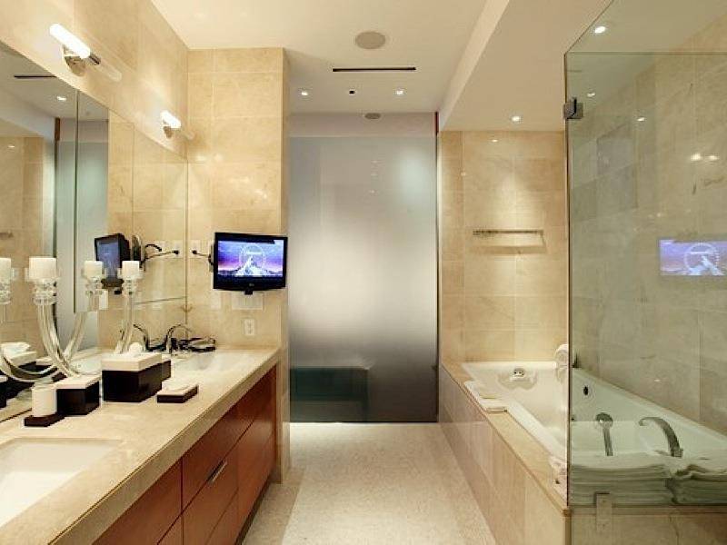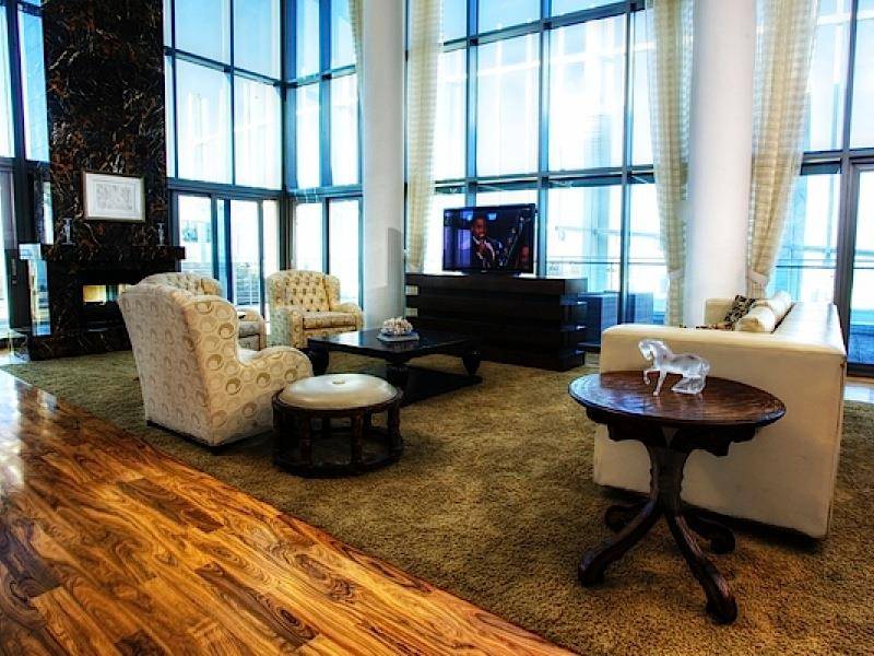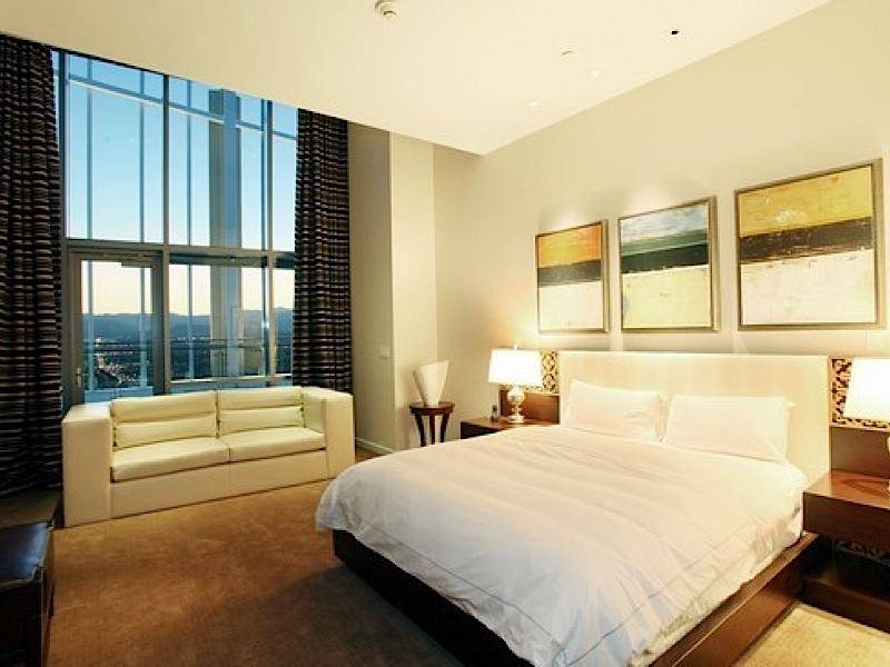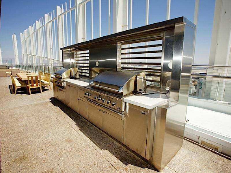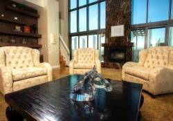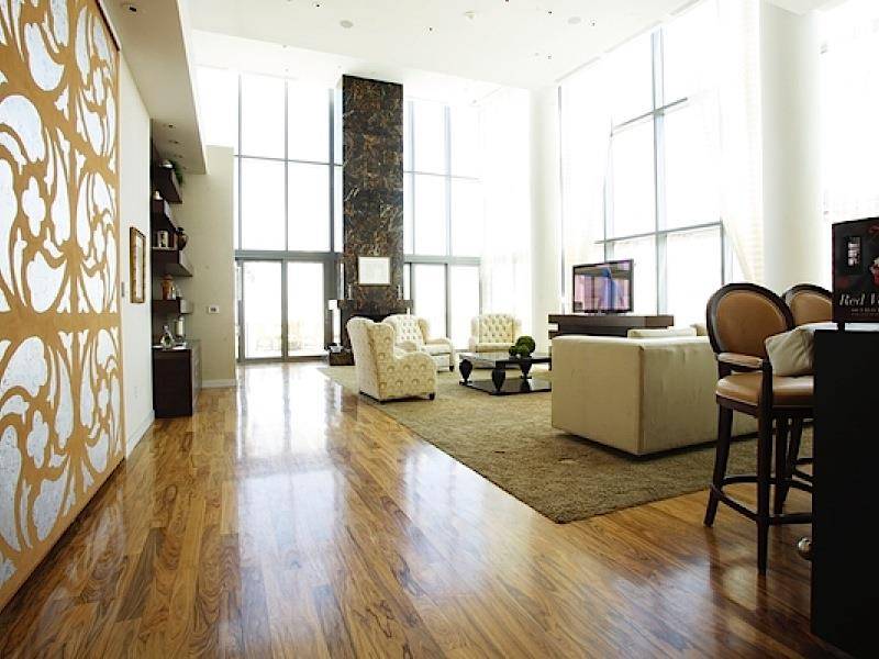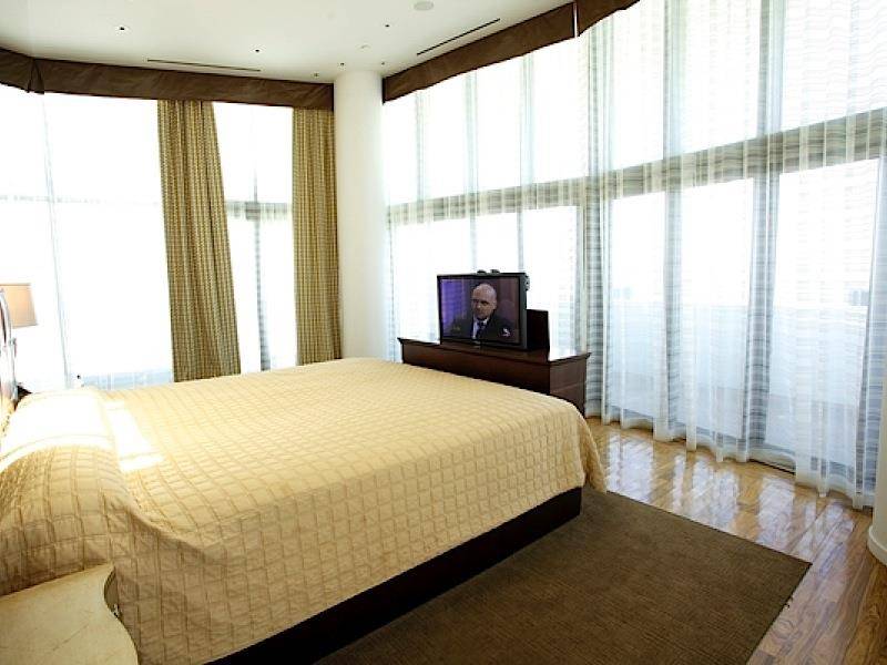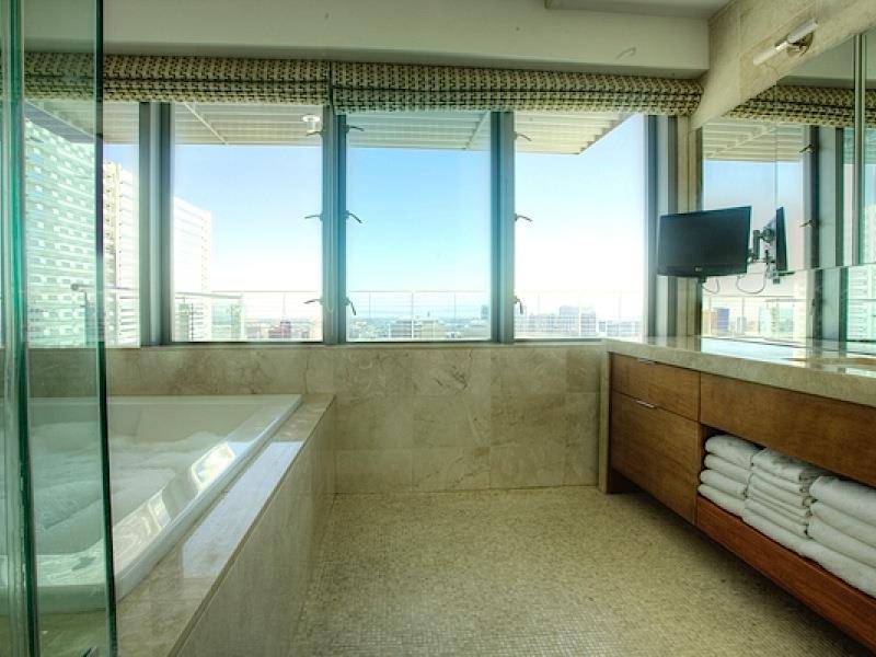 Along with the duo of invaluable art, the phenomenal three-bedroom, five-bath pad comes with a plethora of jaw-dropping features, including a 20-person hot tub; 35 flatscreen TVs; a DJ booth; a wet bar; an outdoor theater and kitchen; and an unparalleled remote control system—not to mention its own helipad. Accessible via private elevator, the glass-encased beauty—which is being sold fully furnished—boasts 30-foot-tall ceilings, and 360-degree vistas of the Strip.