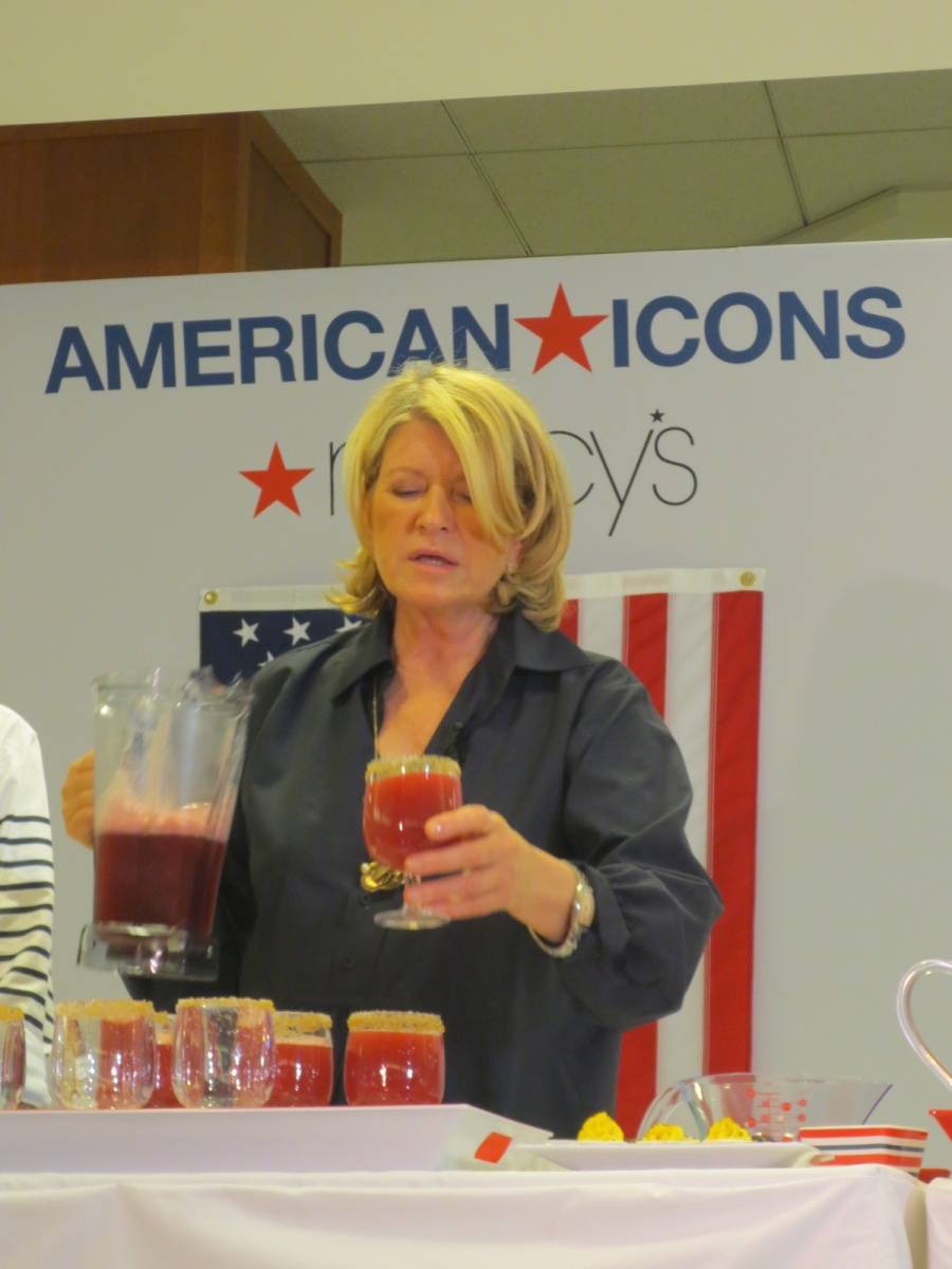 Celebrity cook, author and TV personality Martha Stewart paid a visit to Macy’s of San Francisco’s Union Square district today. As part of Macy’s American Icon Series, Stewart partnered with the retailer to bring her classic American recipes to the masses in her new book, Martha’s American Food. The media mogul arrived to a full house of admirers (most with book in-hand), before demonstrating her favorite cocktail recipes from her book. Following the demonstration, she stayed for a 10-minute Q&A session where she talked about some of her favorite places to eat in San Francisco, among many fun subjects, then finally delighted guests with a book signing. Here is a peek at what she had to say: