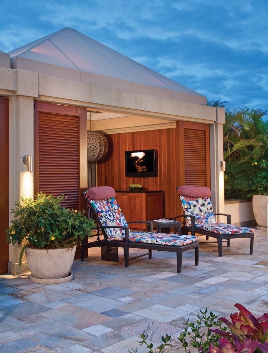 For those who want to seriously slug out, book a Missoni-designed cabana at the adults-only serenity pool at the Four Seasons. There are two cabanas designed by the Italian fashion company, which are decorated with rattan sofas covered in the brand’s typically vibrant fabric, terrycloth towels and graphic pillows. Each cabana contains chaise lounges as well as stools for additional seating; they are each also decorated with Chinese lanterns. You’ll also find Bose headphones, a flat-screen TV, an iPad and a mini-fridge stocked with water and Champagne for the ultimate poolside experience. If you feel like indulging in a tropical drink, we urge you to order the Lava Flow – a pina colada meets strawberry daiquiri – at the swim-up bar.
