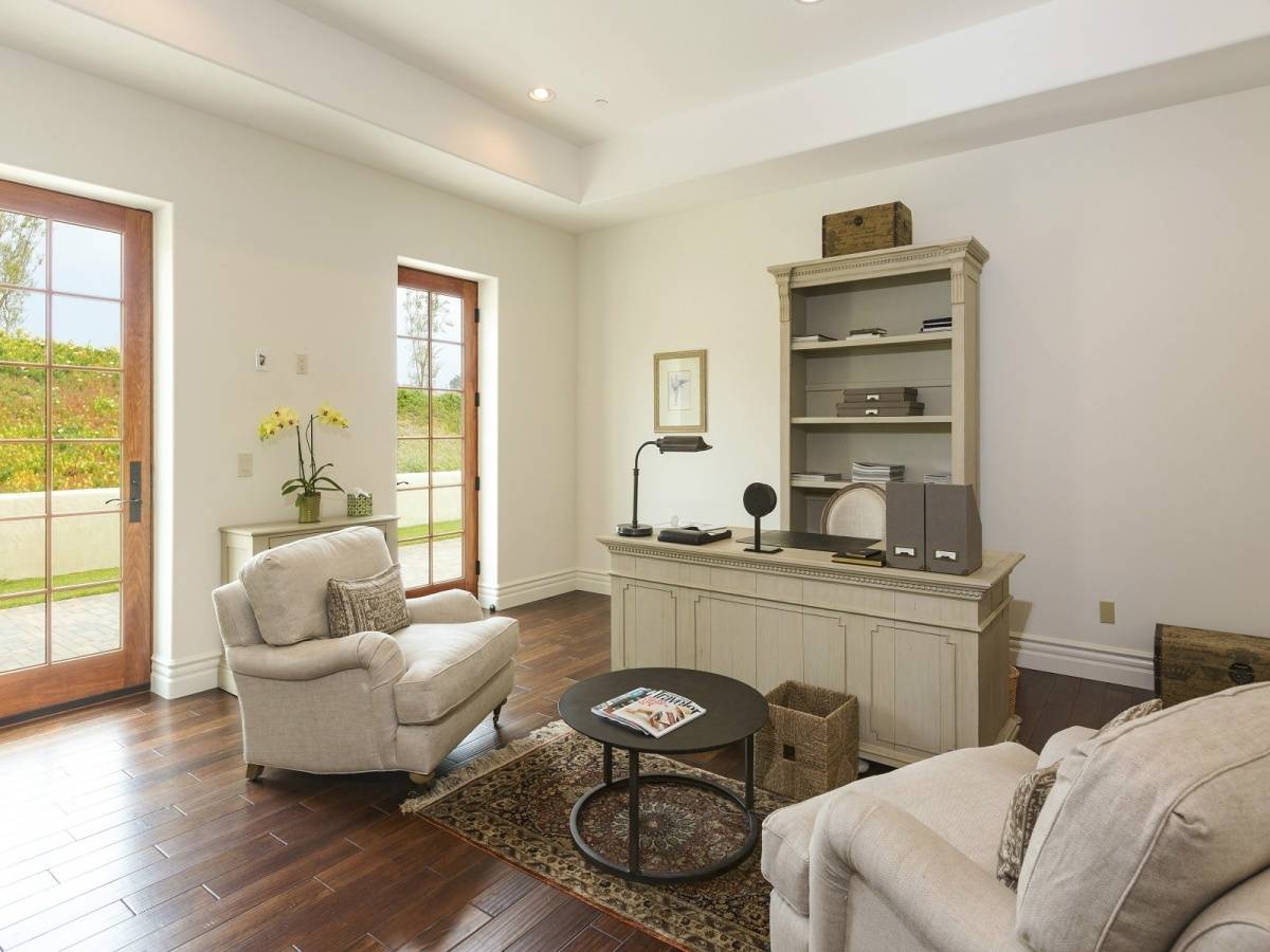 The sophisticated finishes throughout the approximately 11,425-square-foot masterpiece residence are warm and welcoming. With two master suites, four additional bedrooms, an office, maid’s quarters and two guest powder rooms, the house also features a basement complete with a tub and a spa tub for a luxurious spa and gym experience. Large stone deck areas and flat grassy yard come complete with well and water tanks for landscape optimization. A detached two-car garage and motor-court are elegant enough for dignitaries and celebrity guests alike.