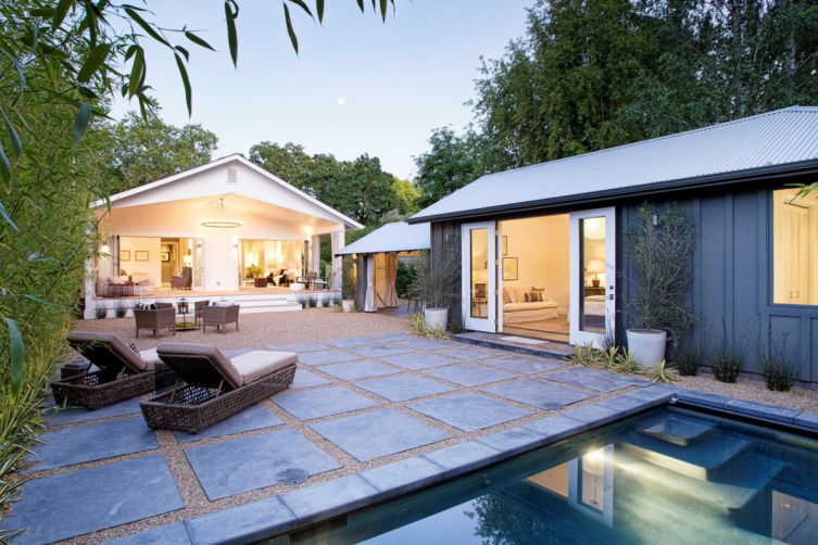 Located just an hour away from San Francisco and two blocks from the town’s historic plaza, this country chic bungalow in Sonoma emanates immense charm and sophistication. Evoking a relaxed California Wine Country vibe, the residence has a modern open floor plan, ample French doors and windows, an expansive veranda overlooking the backyard, a contemporary chef’s kitchen, a luxurious master suite, a pool, a dining cabaña and a guest studio. The home also has finished wide-plank oak floors, recessed lighting, brushed nickel hardware and custom light fixtures.