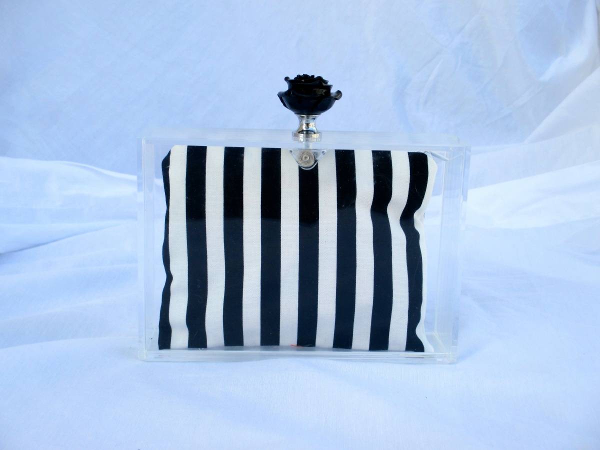 With its distinctive design, its originality, and its refinement, House of Biron’s Lucite clutch makes for the perfect day/evening clutch. “The concept behind the House of Biron’s Lucite clutches is to showcase the insert bag. The insert bag can fit your cell phone, makeup compact and anything else you need for an afternoon or evening out and about,” the designer explains.