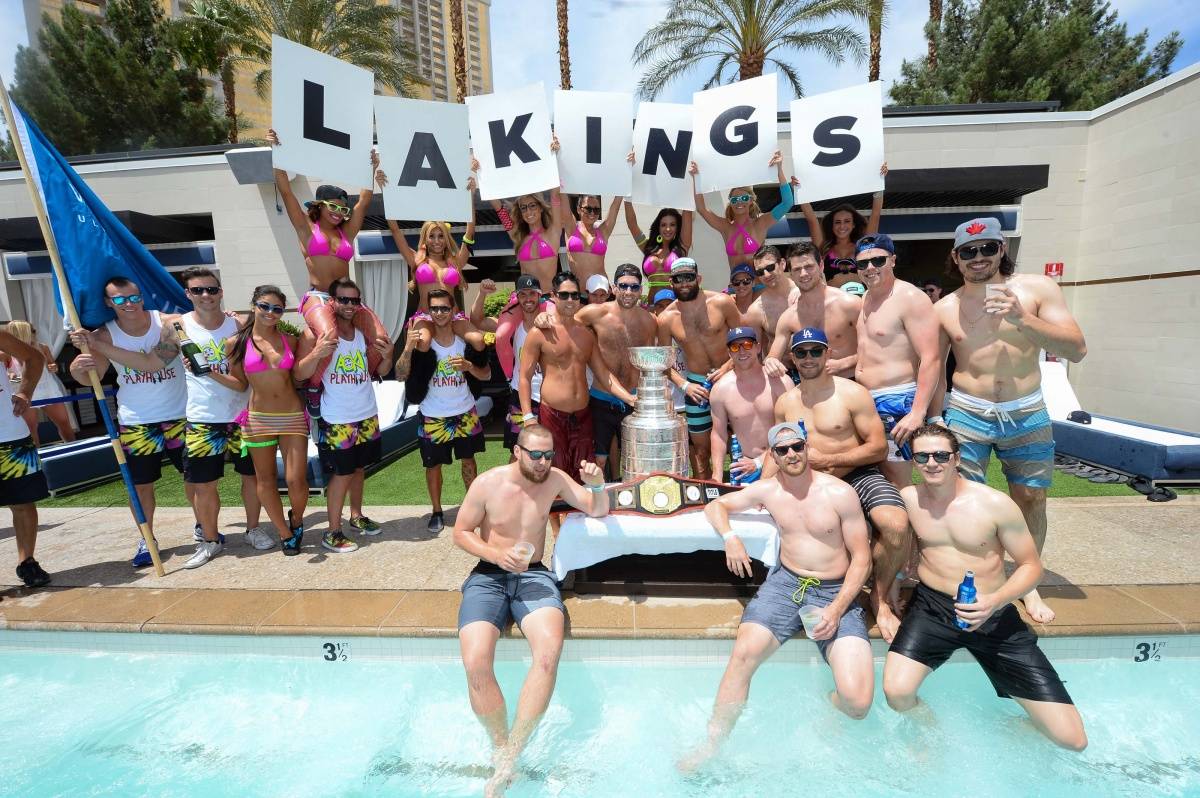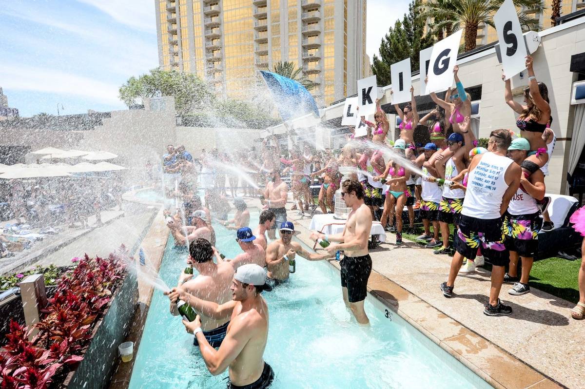 Two members of the English trance music group Above & Beyond manned the decks on Thursday. As the festivities continued, the cake throwing sensation Steve Aoki transformed the pool party into his very own Aoki’s Playhouse as he spun his beats for the masses on Friday. Also joining in the fun were the 2014 Stanley Cup champion LA Kings as they celebrated their victory at Vegas’ “it” pool party and showed off their legendary trophy.