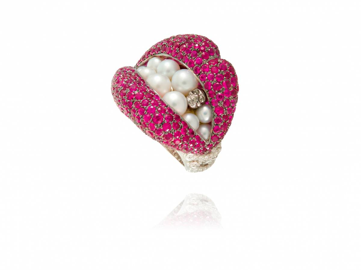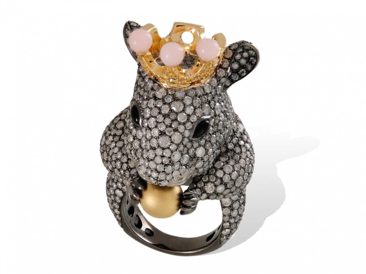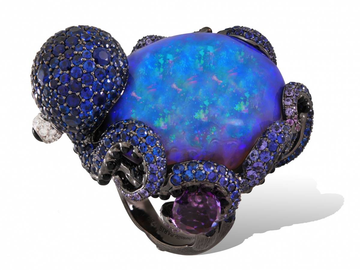 Let’s face it, a damn good cocktail ring can save even the most atrocious of outfit choices—such as a Juicy Couture tracksuit. Case in point: Lydia Courteille’s four-leaf clover ring. Set in 18k gold and bedazzled with opals and green tsavorites, the piece is a work of art. In fact, everything that comes out of Courteille’s fiery imagination is phantasmagoric.