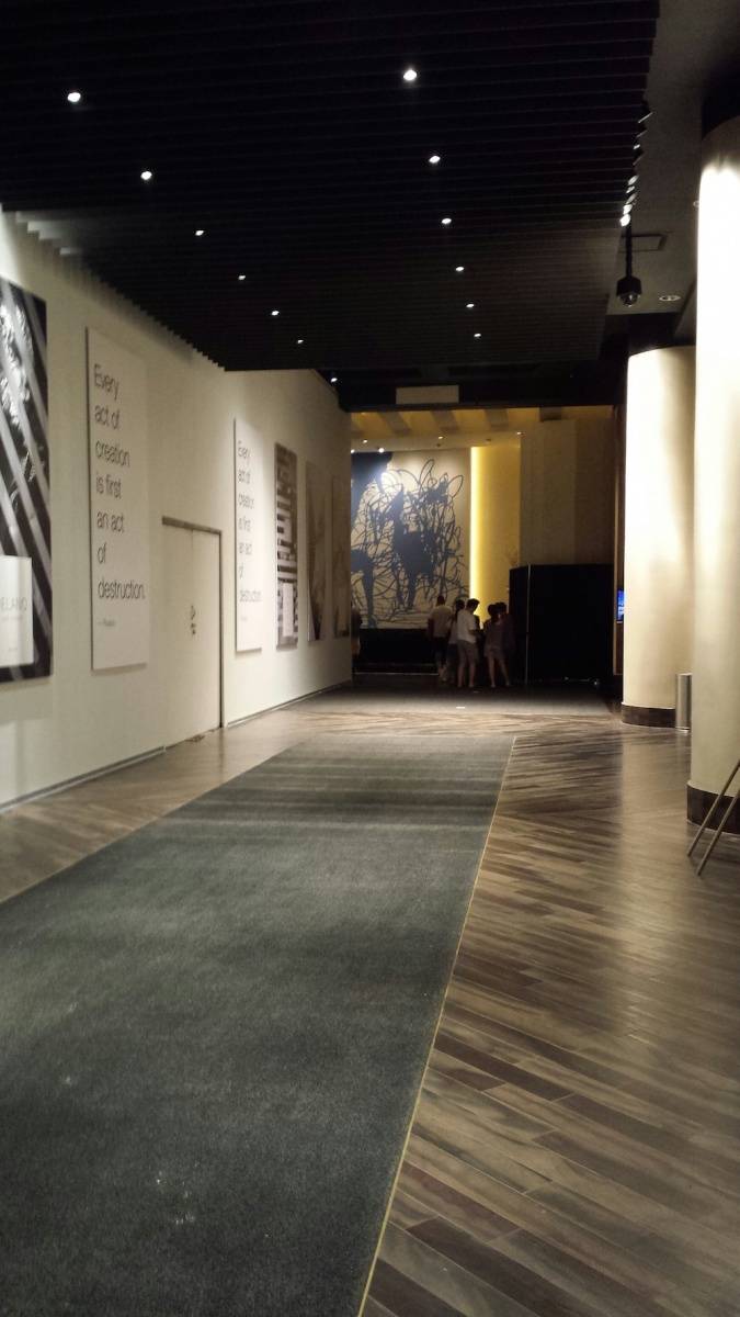 First up, the lobby, where a stone entry and wood-slated gate greet guests. Find a divided boulder from the Nevada desert. The walkway into the resort has transformed with colors and textures inspired by the layered landscape of the Mojave Desert.