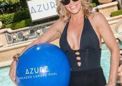 Media personality Jenny McCarthy soaked up some rays at Azure Luxury Pool at the Palazzo on Friday afternoon. The talk show host, known for her work as a model, television host, actress and author, enjoyed the luxury cabanas while showcasing her bubbly personality, cracking a couple of playful jokes, and socializing with a few of her friends and guests.