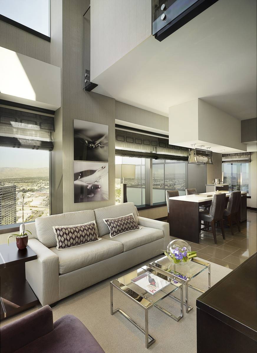 Those who really want a discrete, indulgent experience should book a stay at the AAA Five Diamond Award-winning Sky Suites at Aria Resort & Casino. Here you’ll find exclusive porte-cochère entry with a personal curbside welcome after arriving in a luxury vehicle, before enjoying private check-in in a VIP entrance that few will ever see. You’ll then be whisked to a secluded lounge with complimentary food and beverage amenities including a daily wine and cheese pairing before heading up to your one or two bedroom suit via private elevator. There you’ll find a complimentary iPad/Laptop to play on during your stay, customized mattresses with triple sheeted, 100% Egyptian cotton linens, as well as stunning bathrooms with stone showers, a separate whirlpool bath, dual granite vanity sinks and a private water closet with TOTO electronic fixtures. It isn’t like you’ll be in your suite much, but if you are, you’ll have access to three TVs, including a 52″ baby in the living area, as well as a Plug and Play laptop, video devices, cameras and MP3 players.