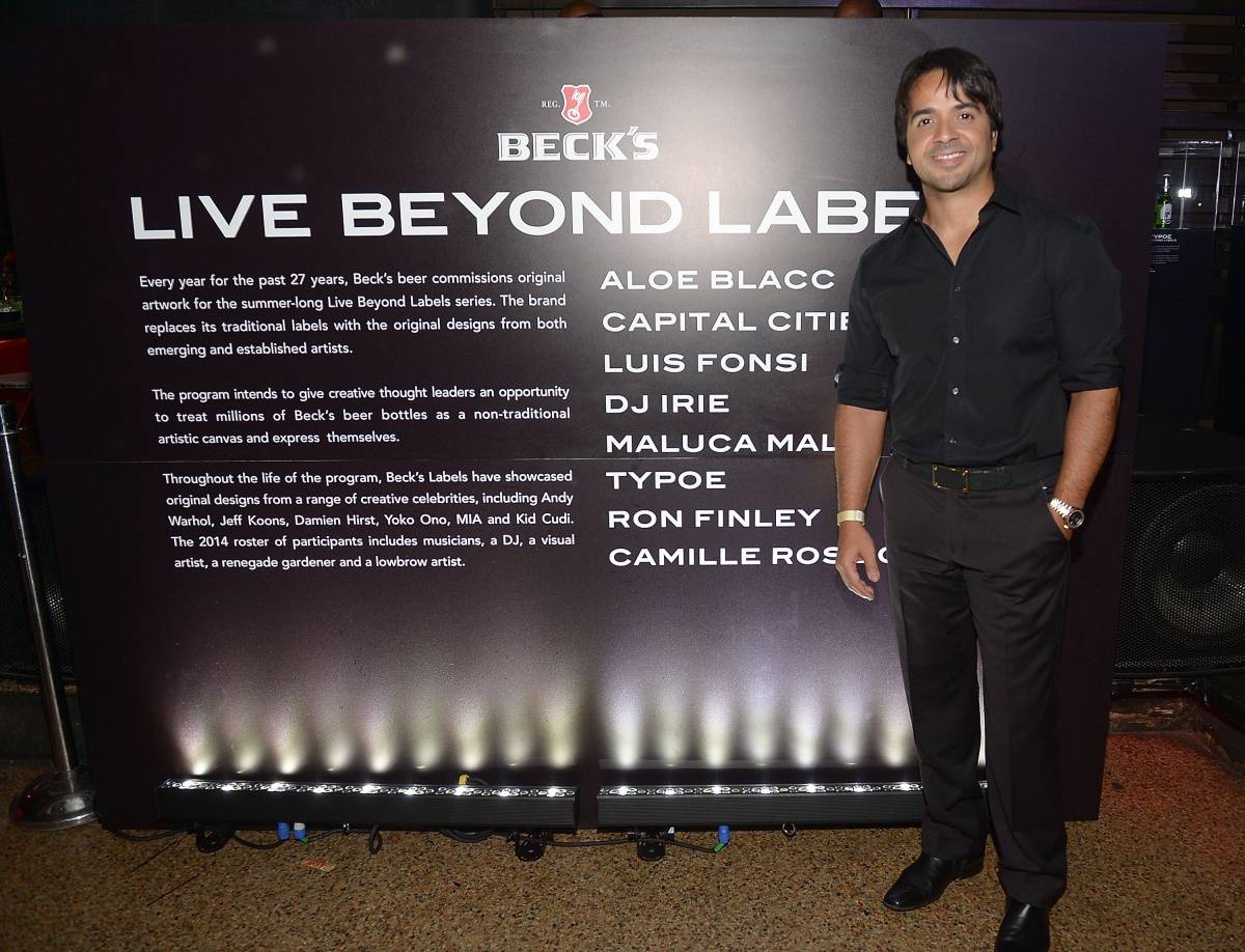 Latin American recording artist Luis Fonsi is not only one of the most famous singers in the world, but most recently, expanded his horizons to becoming an artist. Fonsi, along with Aloe Blacc, Capital Cities, DJ Irie, Alauca Mala, Typoe, Ron Finley and Camille Rose Garcia, each collaborated with Beck’s, the German beer brand to individually design a bottle for the international label. Last night at the Electric Pickle, Miami art enthusiasts and fans of Aloe Blacc gathered to watch Blacc perform his hit singles “I Need a Dollar” and “Wake Me Up” for the launch of ‘Beck’s Beyond Labels.’ Haute Living took a moment to catch up with the Puerto Rican born, Miami resident Luis about this artsy project.