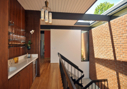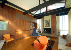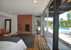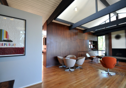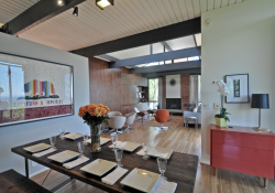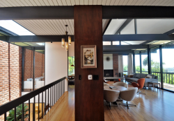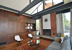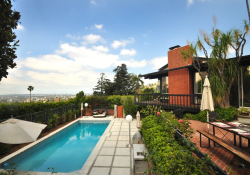 This private, Post and Beam masterpiece was the first contemporary structure to receive Landmark Status by the City of Los Angeles. “The Jacobson Residence” embodies the distinguishing characteristics of famed architect Edward Fickett’s work, featuring custom designed light fixtures, clerestory windows, room partitions, walnut paneling, built-in amenities including a bar and music storage, aggregate stone paving, large wrap-around decks and an interior atrium positioned to allow light into the home. The landmark views, swimming pool, separate guest/office quarters, three bedrooms, two and a half bathrooms, study, private entertainment pavilion, newer period kitchen, efficient solar panels and improved skylight all cater to today’s lifestyle. Set within a native California landscape, sited on the finest architectural street in Los Feliz on approximately 13,000+ sq. ft.