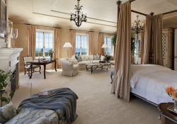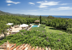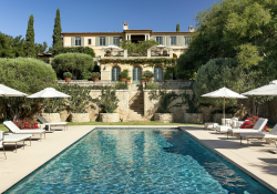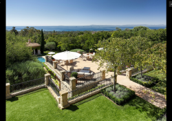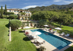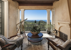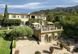 Located in a prime Montecito location offering panoramic ocean and Montecito Valley views, Prima Luce faces southeast, taking its name from the unobstructed views of the first rays of sunrise and moonrise. Famed designer Robert Webb has captured the ambiance of a Tuscan-style country villa with details like hand-chiseled Santa Barbara sandstone, quarried from these very grounds that form the walls, posts, and facades, which are complemented by imported French limestone on the pillars, window surrounds, and chimneys. This grand home, tempered by comfort and livability, features large windows that capture spectacular vistas at every turn. The main residence is approx. 8,425 sq.ft. with 5 bedrooms, 6 full baths, 2 powder rooms, and 5 fireplaces. There’s a one-bedroom guest house, a luxurious pool house and a 65-foot pool surrounded by lush lawns and rose gardens. The property also features two 3-car garages, a 7-hole putting green, and a “Kids’ World” with a two-story cottage and whimsical gardens.