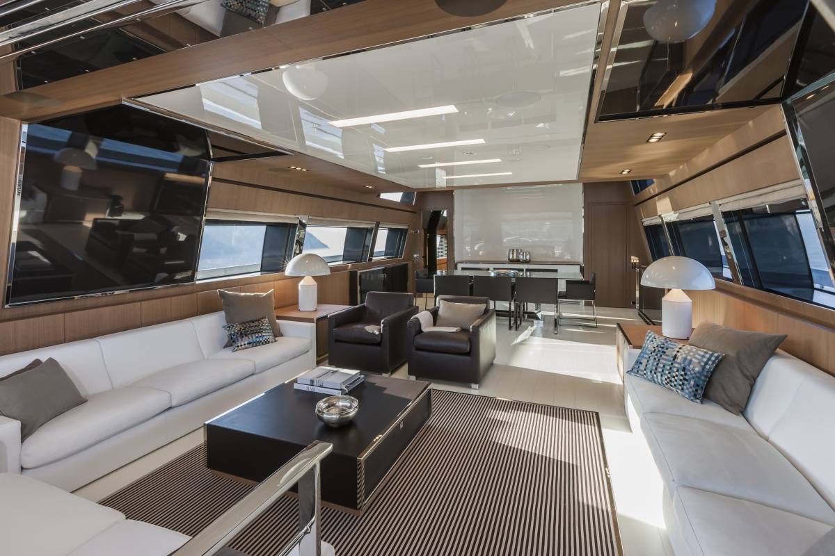 The ship is presented in “Regal Silver” color and the boat’s outer presentation is gorgeous, “I saw [the 122′] and I am increasingly sure this is Riva’s flagship which I believe to be absolutely worthy of this brand,” says Micheli.