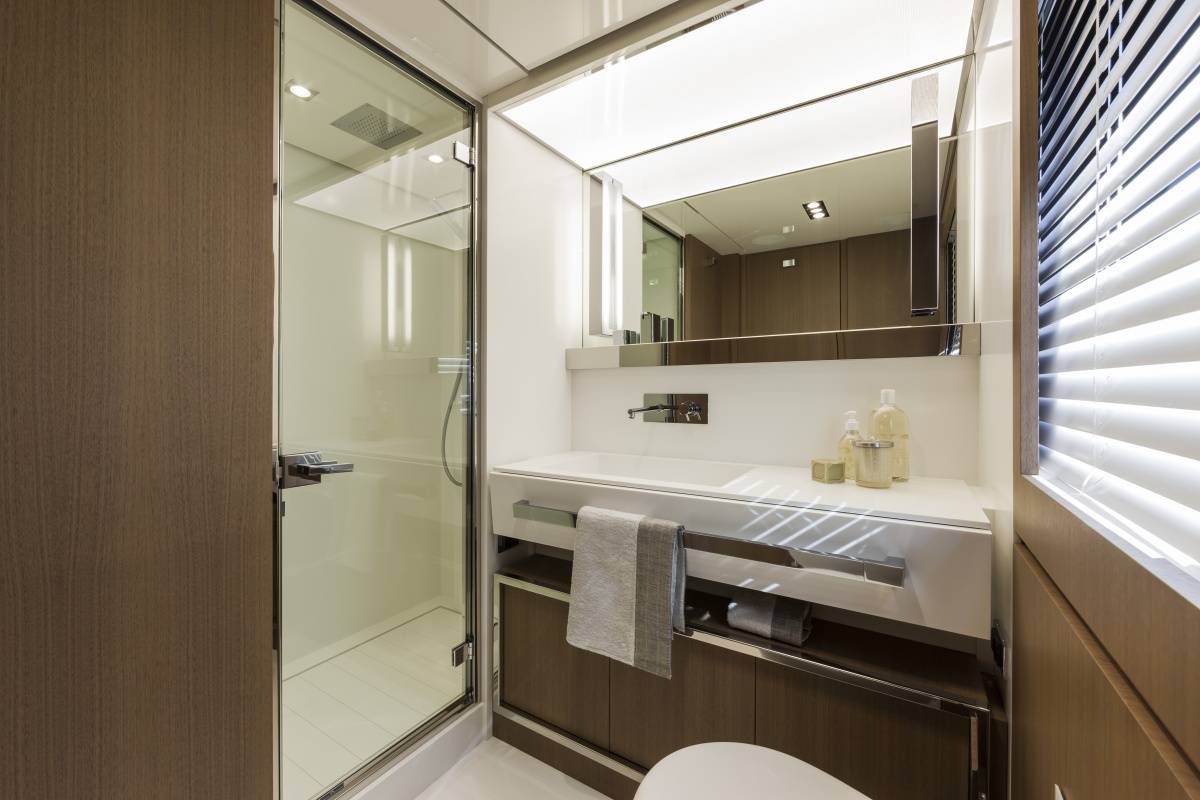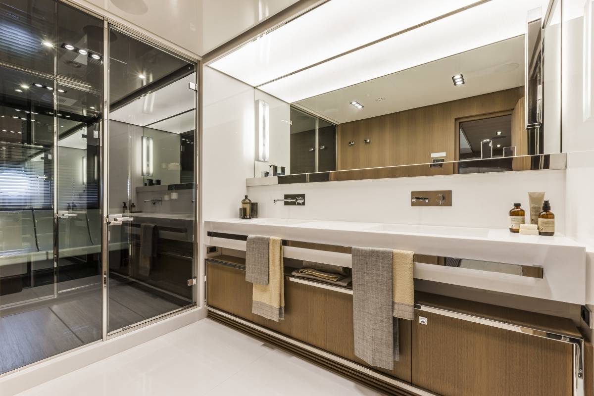The aluminum planning hull can reach top recorded speed of 28,51 and a cruising speed of 26 knots2, thanks to two MTU 12 V 4000 M 93L, 3510 mhp engines. This is a high-tech planning yacht ensuring great comfort and top performance in its class.