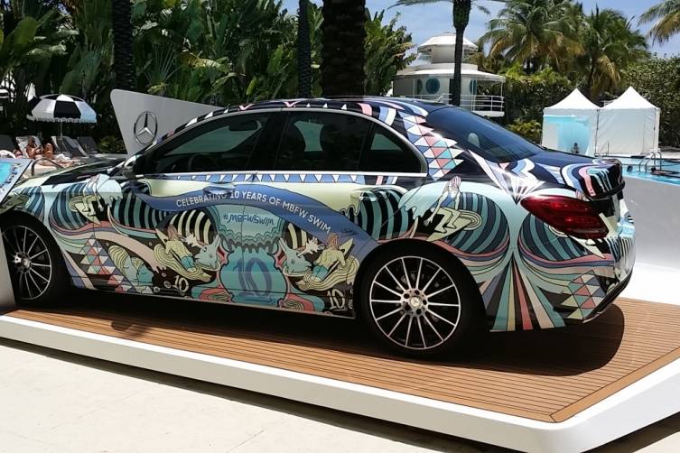 This Mercedes-Benz Fashion Week Swim is a biggie. It’s the event’s 10th anniversary and to celebrate, they wrapped ten 2015 C-Class cars in very cool prints by ten celebrated designers who have been showing at the event since its inception.