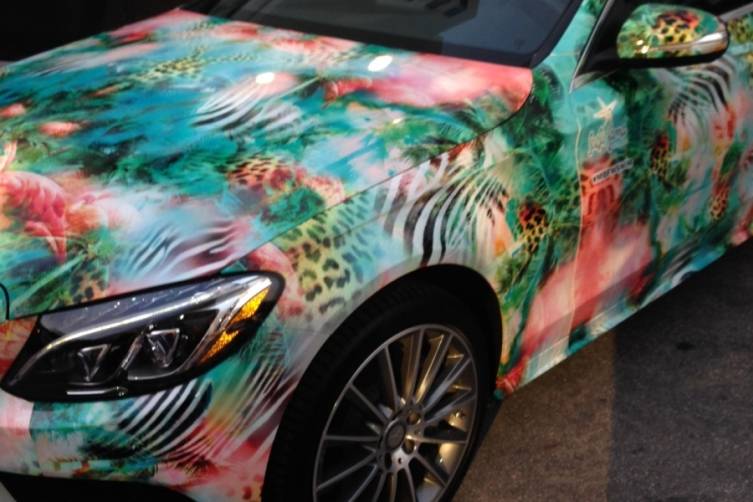 The designer-print wrapped cars will welcome guests at the Raleigh, Swim Week headquarters and be on hand to liven up events each day and night giving both swim enthusiasts and car enthusiasts something both to get excited about as the C-class has had a big update for 2015, autophiles have been eager to see.