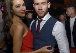 Close to 1 a.m., the XS team brought out a four-tier birthday cake with champagne and sparklers for the occasion. Joe blew out his candles and posed for pictures while the group sipped on cocktails, and a few of the gents, including Nick, indulged in cigars. Nick was the life of the party, dancing on the couch and making sure his brother was having a great time before breaking away to demonstrate his affection for Olivia, sneaking kisses and sweet exchanges in between photo opps with friends.