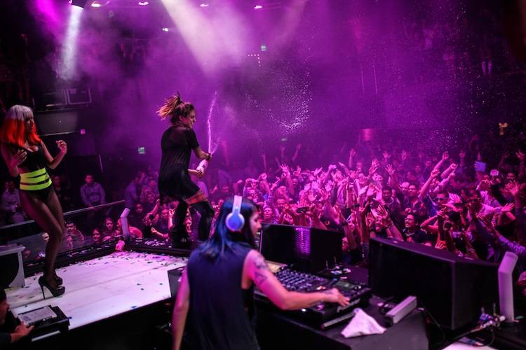 Haze presented a special Labor Day weekend set by superstar DJ group Krewella. Sisters Johan and Yasmine touched down in Vegas and immediately headed to Haze for their show. The ladies, set the decks a blaze with an adrenaline-pumping, jump inducing show filled with their notable hit songs including “Alive,” “I Live for the Night” and “I Know What it Feels Like.” They also dropped a mix of heavy-hitting base intensive tracks that shook the nightclub and sprayed the crowd with champagne. Later during their set, Haze Nightclub surprised Johan with a cake to celebrate her 25th birthday as fans and her sister, Yasmine, sang “Happy Birthday.” In Krewella fashion, the ladies revved up the party even more and “caked” front row fans in the face with the sweet treat. After their fun-filled set, Krewella stopped by Light Nightclub for fellow DJ, Alesso’s performance.