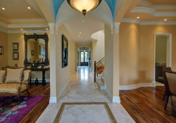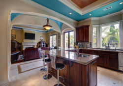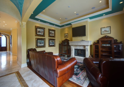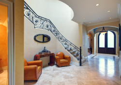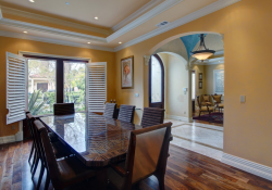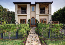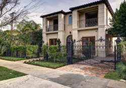This beautiful, custom built, gated Beverly Hills stunner is an entertainer’s showplace. Offering the perfect blend of grand opulence and relaxed modern comfort, the home features a dramatic formal entry, central hall with soaring hand-painted dome ceilings, Venetian plastered walls and travertine wood floors that lead off to a fire-lit formal living room. Also featured are an elegant formal dining room with butler’s buffet, a bedroom with an office and full bath, a chef’s eat-in kitchen with peninsula island seating, spacious family room with French doors leading out to a tranquil garden and pool, an elegant central stairway leading to the luxurious second floor master suite with marble bath and three additional suites with walk-in closets. An exquisitely detailed grand residence.