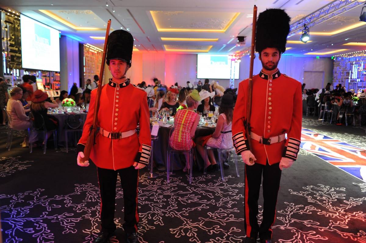 Event Co-chairs Jillian Posner and Dr. Stacy Chimento kicked off the afternoon of high fashion and philanthropy with a cocktail reception – where guests were greeted by Royal Palace guards and champagne. They were then led into the ballroom to enjoy a formal tea service and a three-course lunch at their tables, which were adorned with fine silverware provided by Christophle and luxe floral arrangements provided by Kalla.