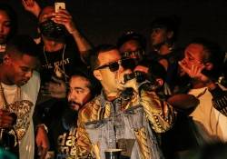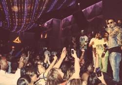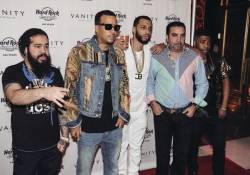 French Montana hosted at Vanity Nightclub on Friday night. The rapper arrived around 2 a.m. and posed for photos on the red carpet. Montana hopped on stage, where he seemed to hang back and keep a low profile prior to performing his hit songs “Pop That” and “Ain’t Worried About Nothin’.” Notable guests included TV Johnny; professional rappers Yo Gotti and Red Café; boxers Zab Judah and Danny García; and more. About an hour later, French Montana headed out of the nightclub to meet up with Bieber for a get-together in his suite.
