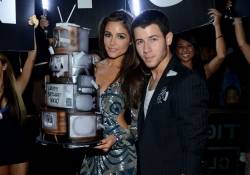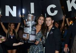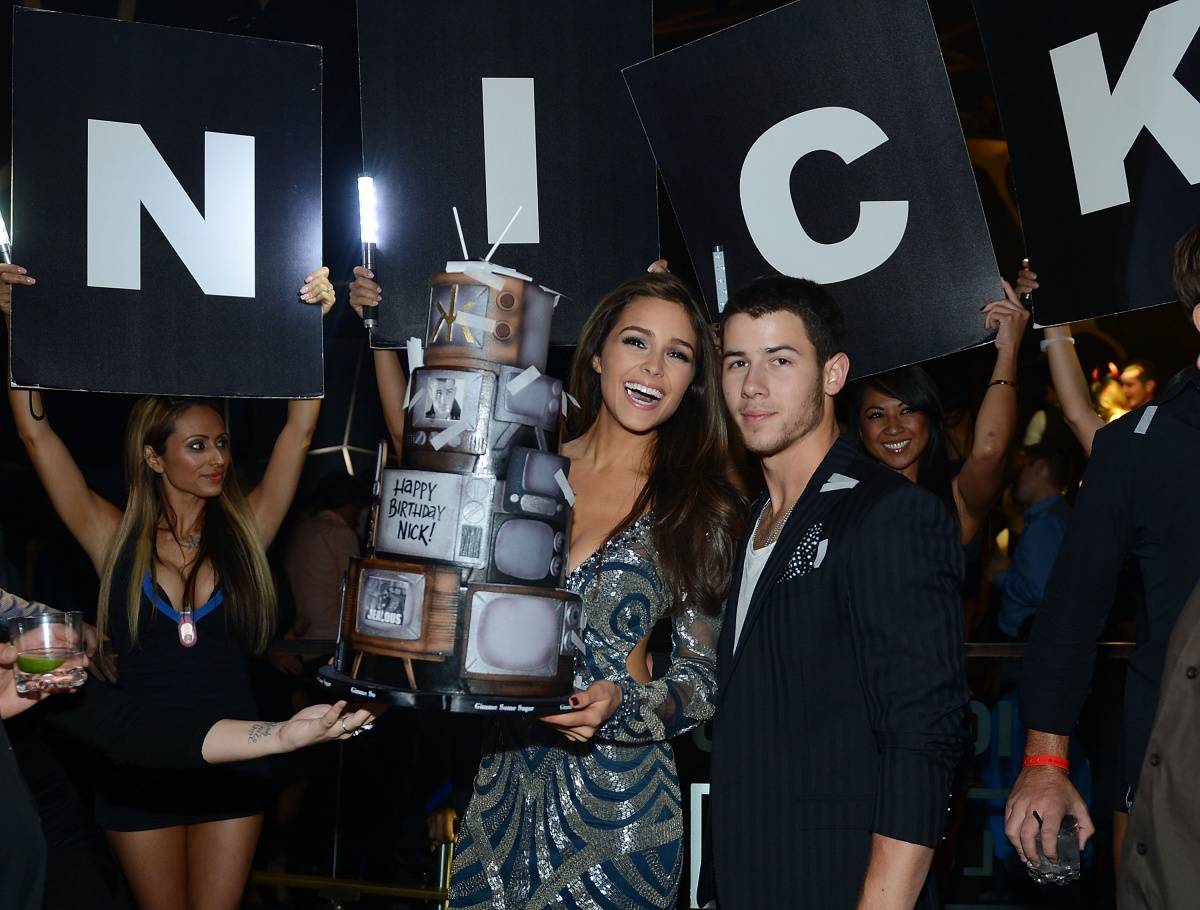 Just tables away, “Chains” singer Nick Jonas was also seen enjoying a night out as he celebrated his 22nd birthday with a group of close friends including girlfriend Olivia Culpo. In town for the iHeart Radio Music Festival, the singer sat at a VIP table and was surprised with a four-tiered cake presented by the former Miss Universe.
