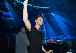 Ready to take his celebration to full party mode, the group made their way up to the fourth level of the complex sat at a VIP table located on the main stage. Schwarzenegger and his guests joined in a toast and began dancing to the beats of Tiësto. The young star hopped into the DJ booth and pretended to spin for the partygoers. As his friends nearby cheered him on he threw his hands in the air while he posed for pictures. The birthday celebration was a big success for the newly 21 year old as he danced and mingled with his friends all night long in true Vegas fashion.