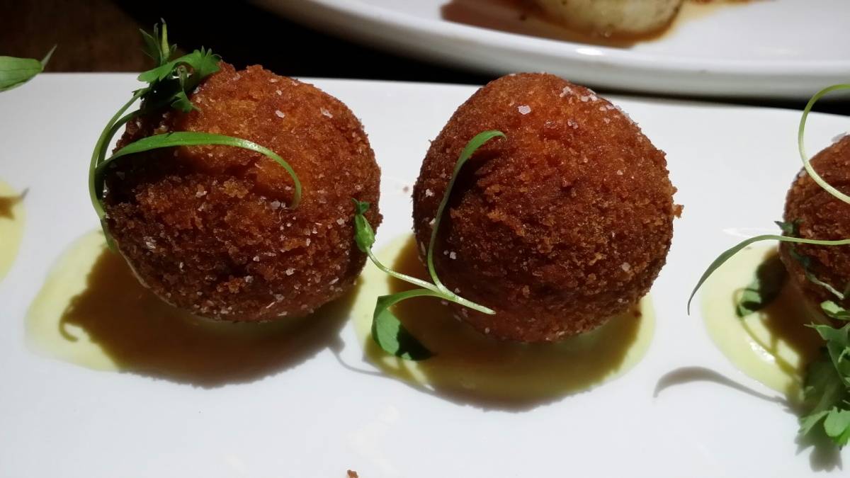 Maybe it’s happening bar in the lobby, which serves a long list of wines from all over. Or maybe it’s the “kitchen” a small restaurant with high ceilings that make it cozy, yet grand, and likely to be filled with both fresh and recognizable faces this season. And the food, by Executive Chef Keith J. Suarino, is stellar. The menu is the bereft mix between Mediterranean and American favorites like Fire Roasted Brussel Sprouts with aliments and beeswax honey. The menu is divided into unique sections like “barely touched” for mouth-watering ceviches, “flavor” for Goat Cheese Croquettes, Charcuterie Boards and Meatballs. The “from the sea” section changes daily and featured a perfectly cooked whole Branzino served a la plancha and Cobia the day we were there. Everything else we tried was simultaneously unique, yet classic— which is a tough feat to pull off.
