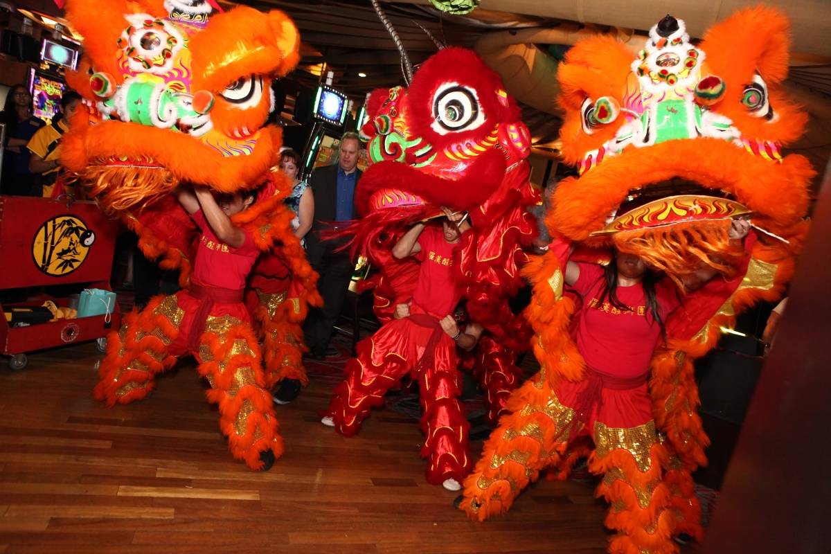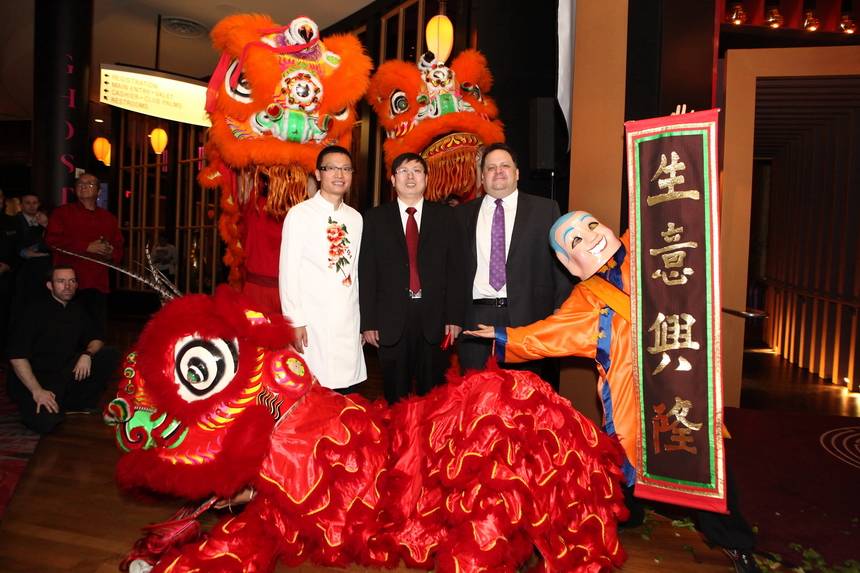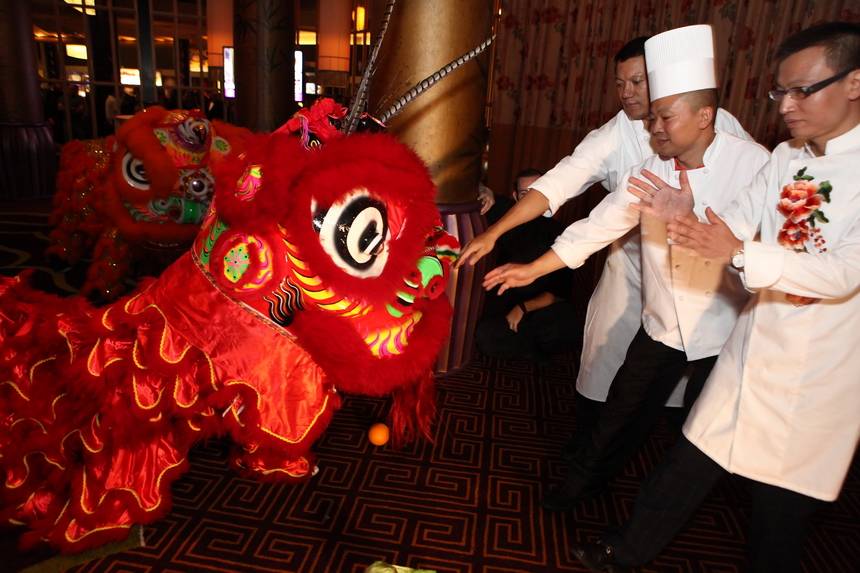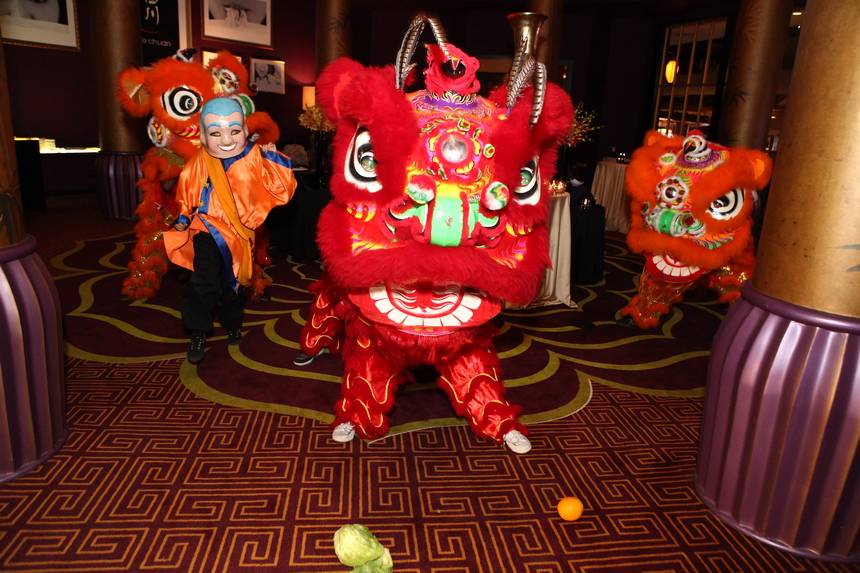Before the private party started, a large crowd gathered around the entrance of the restaurant to enjoy a festive lion dance, an ancient Chinese tradition to commemorate the restaurant opening.