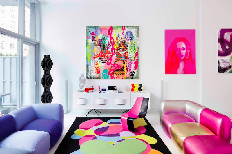 Needless to say, his Hell’s Kitchen digs are flooded with pops of color, wild patterns, and (of course) his iconic designs.