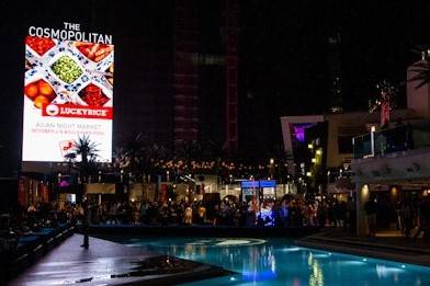 LuckyRice Night Market, now in its third year, transformed the Boulevard Pool at the Cosmopolitan of Las Vegas into a lively outdoor marketplace featuring traditional Asian street food and modern variations alike on Saturday night.