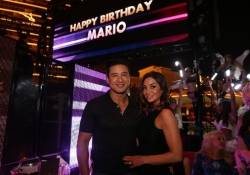Shortly after midnight, the group made their way to XS Nightclub to continue the celebration. With Courtney by his side, Mario led the group into the venue. He began grinning and was overheard saying “Whoa” when he saw the LED screens flash “Happy Birthday, Mario.” Guests went wild as Mario, Courtney and friends were escorted in style down the nightclub’s golden staircase with 10 XS Angels flanking both sides, waiving light wands to direct them to their stage side table.