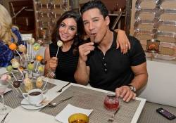 Before meeting up with their group of 12 friends for dinner, the two lovebirds stopped in the lounge at Andrea’s, where Mario sipped on a Sinatra Smash cocktail.