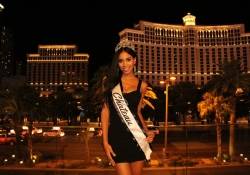 Arriving shortly after 11 p.m., the beauty queen donned a chic black romper and mingled with the excited contestants. Sanchez, Nevada’s first Miss USA, has been busy preparing for the Miss Universe competition that will be held on Jan. 25, 2015, in Doral, Fla.