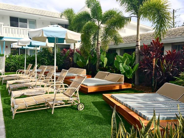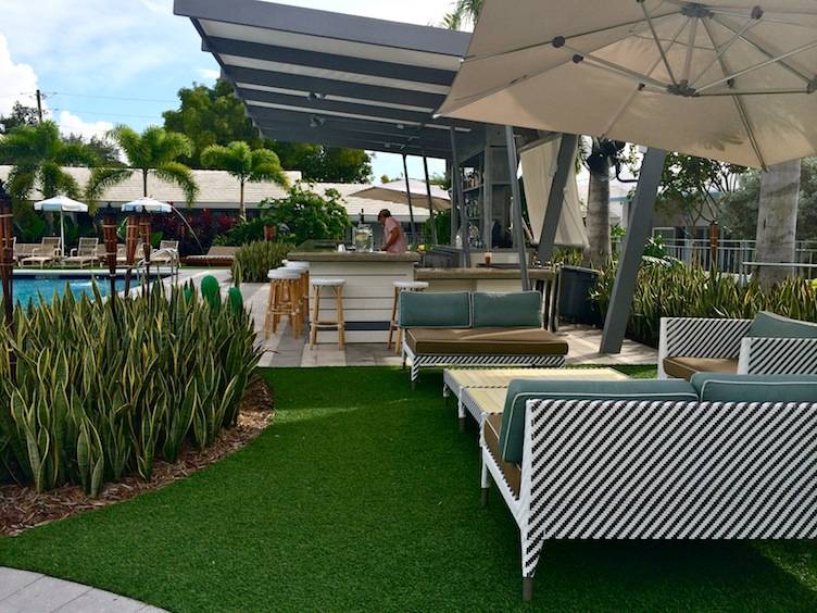 Pieces from the original property have been cleaned up and painted over, such as the welcoming mermaids on the street corner, which were surprisingly in tact after 50 years. The same can’t be said for the mosaic dolphin and mermaids in the pool, which was sunk in and had weeds growing out. One would never know that though now, with its glistening mermaid and dolphins restored to original conditions and corner fountains shooting streams of H20 into the watering hole. A poolside bar is already MiMo’s newest happy hour spot for the neighboring residents of Bell Meade and the surrounding areas.