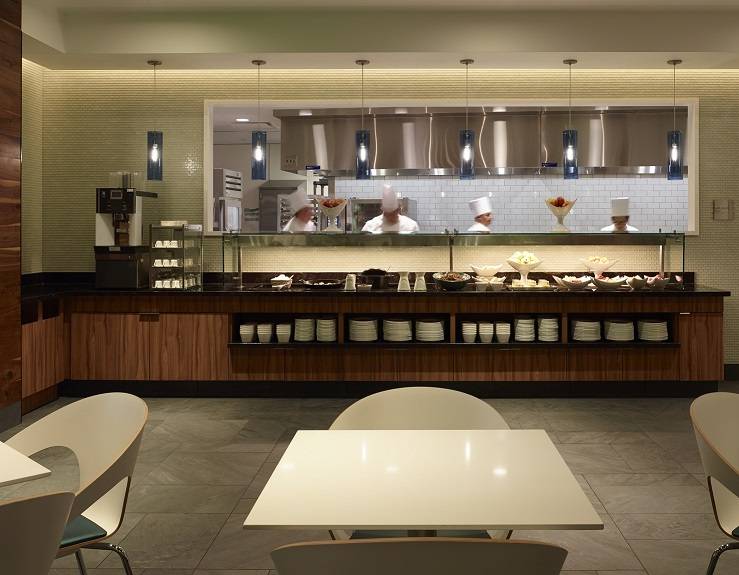 - Work & Play: Connected work spaces include high speed Wi-Fi and outlets near every seat, and a sound-proof family room allows a safe and fun place for kids to play.