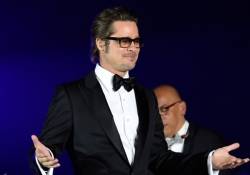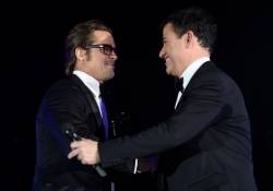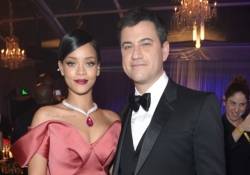 During the brilliant evening, Brad Pitt gave a hilarious introduction as Rihanna took the stage for a killer orchestral performance. The singer changed into a second Zac Posen gown, a midnight blue ball gown which varied differently from the bubblegum pink confection she donned on the red carpet, for her performance of “Umbrella” and “Run This Town,” which guests like Kimmel and Ellen Pompeo danced throughout.