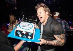 While walking down the venue’s grand staircase, Fozzy’s hit song “Break The Walls Down” played throughout the nightclub and set the tone for Jericho’s arrival. He immediately got on the microphone to yell “welcome to Body English” and tossed LED foam glow sticks into the crowd. Jericho was also surprised with a cake shaped as a wrestling ring at his on-stage table.