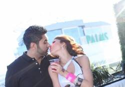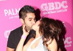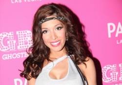 Reality TV star Farrah Abraham hosted a sexy toga party at Ghostbar Dayclub inside the Palms on Saturday afternoon. Dressed in Greek theme in a white dress with cutouts paired with fishnet thigh-highs and a bedazzled headband, Abraham arrived hand-in-hand with new boyfriend Simon Saran. The couple wore matching GBDC temporary tattoos on their wrists before embracing in a series of kisses and heading up to the dayclub.
